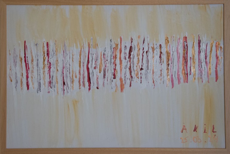 Akili gjeti në art një hapësirë të lirë e të pakushtëzuar – një ditar pa shkronja, ku çdo brushë shkruan me ndjenja dhe krijon një gjuhë të re – një alfabet pa fjalë, të shkrimit pa kufij,.